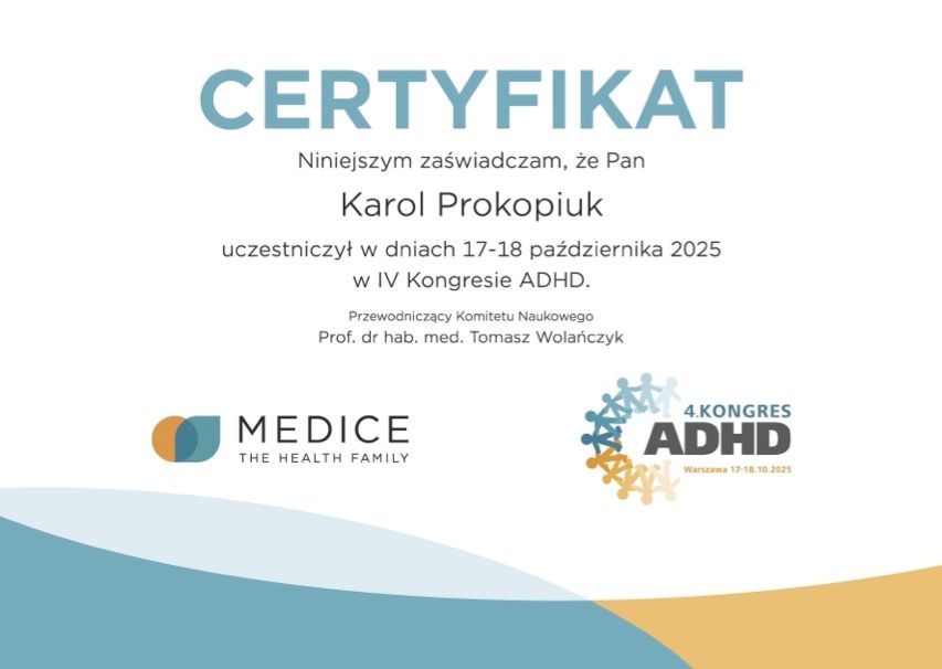Jestem lekarzem psychiatrą, szkolenie specjalizacyjne rozpocząłem w 2018 roku, tytuł specjalisty uzyskałem w 2024 roku. Mam doświadczenie w pracy z chorobami i zaburzeniami psychicznymi, które zdobywałem zarówno w pracy klinicznej, w poradni zdrowia psychicznego, jak i poprzez liczne staże, konferencje oraz specjalistyczne szkolenia. Moja kariera zawodowa obejmuje doświadczenie zdobyte m. in. w Szpitalu Psychiatrycznym w Choroszczy, gdzie pracowałem na oddziałach o różnych profilach (m. in. Oddział Leczenia Ostrych Zaburzeń Psychicznych, Oddział Leczenia Zaburzeń Nerwicowych i Psychoterapii, Poradnia Leczenia Uzależnień) oraz w Klinice Psychiatrii Uniwersyteckiego Szpitala Klinicznego w Białymstoku, w której rozwijałem swoje umiejętności w zakresie diagnozy i leczenia pacjentów. Od 2020r. przyjmuję pacjentów prywatnie.